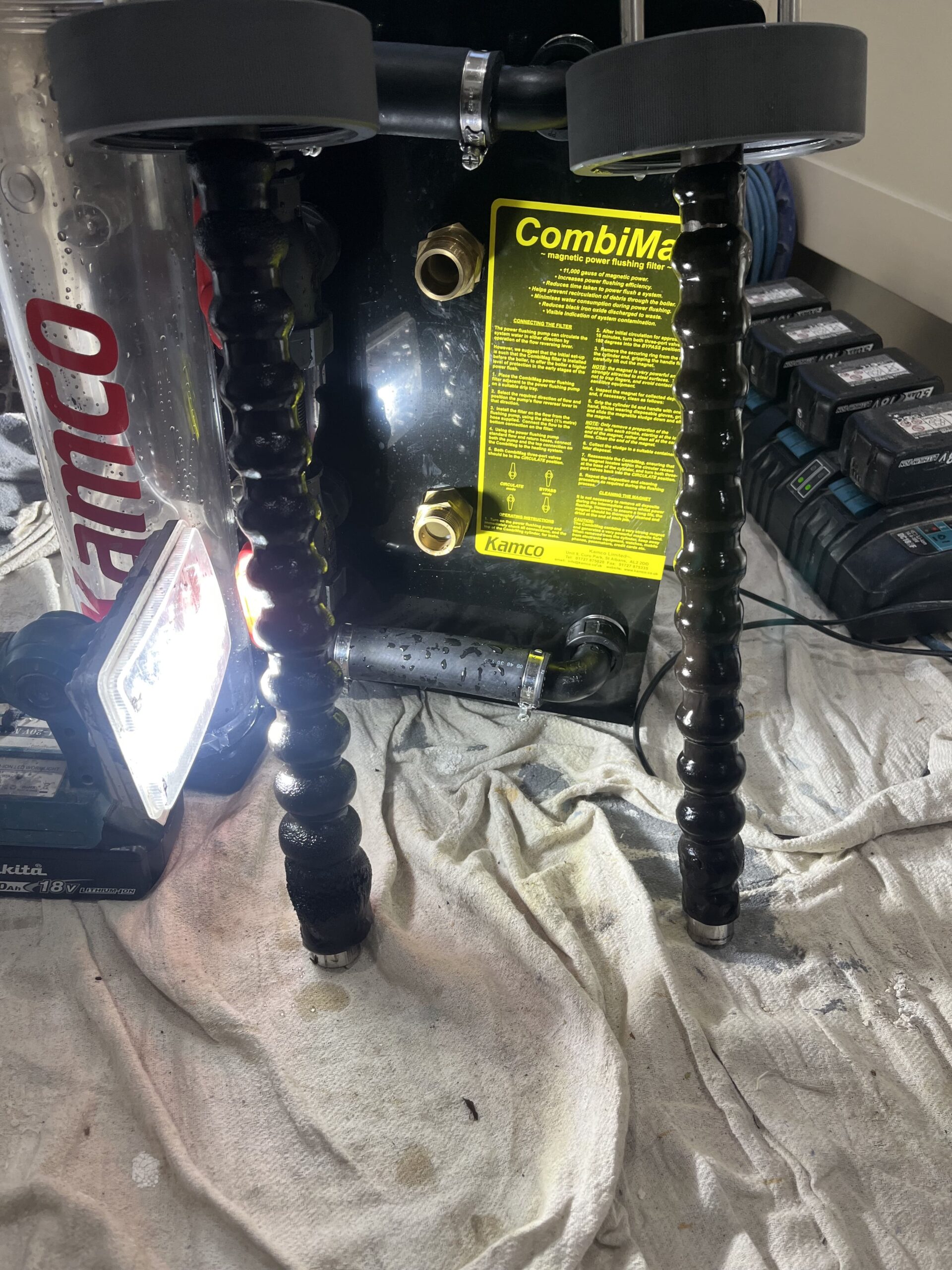 We connect a special powerflushing pump to your heating system. The pump pushes water mixed with cleaning chemicals through the system at high speed but low pressure, which loosens and removes the sludge and debris.